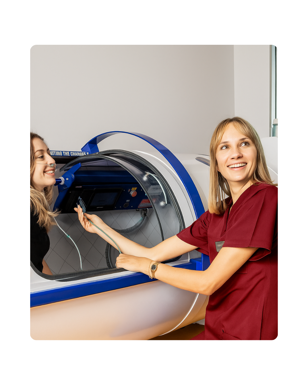 Ponadto, oferujemy gotowe rozwiązania oparte na naturalnych technologiach wspierających długowieczność. Stosujemy wodór molekularny, terapię tlenową EWOT, czerwone światło oraz komory hiperbaryczne. Dzięki temu łączymy naukę, regenerację i realny zysk, pomagając gabinetom budować nowoczesną i skuteczną ofertę.
